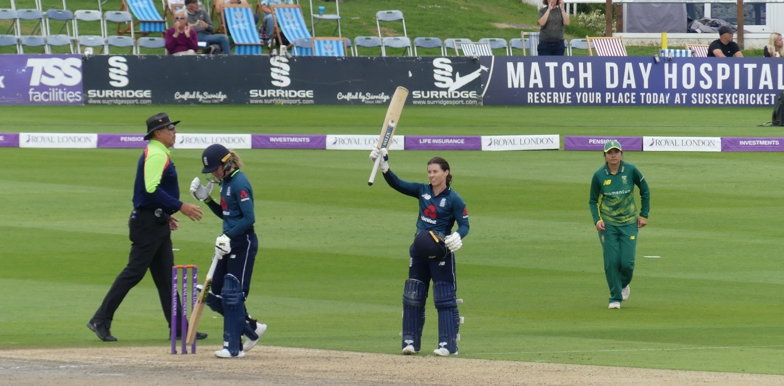 The undoubted star of the show was Tammy Beaumont. She hit 18 fours and 4 sixes as she plundered 116 from 52 balls in a truly spectacular display of attacking batting. She was well-supported by opening partner Danni Wyatt, who cracked 56 from 36 balls, Katherine Brunt, who hammered 42 from 16 balls, and Natalie Sciver, who weighed in with 33 from 15 balls.